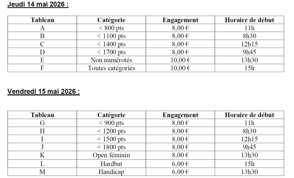 Même si 2026 est une année de transition, avec l’arrivée prochaine de notre nouvelle salle et l’arrivée du pôle raquette et de notre salle spécifique en fin d’année, qui nous permettront de vous accueillir dans des conditions optimales, nous avons tenu à organiser malgré tout notre tournoi national cette année.